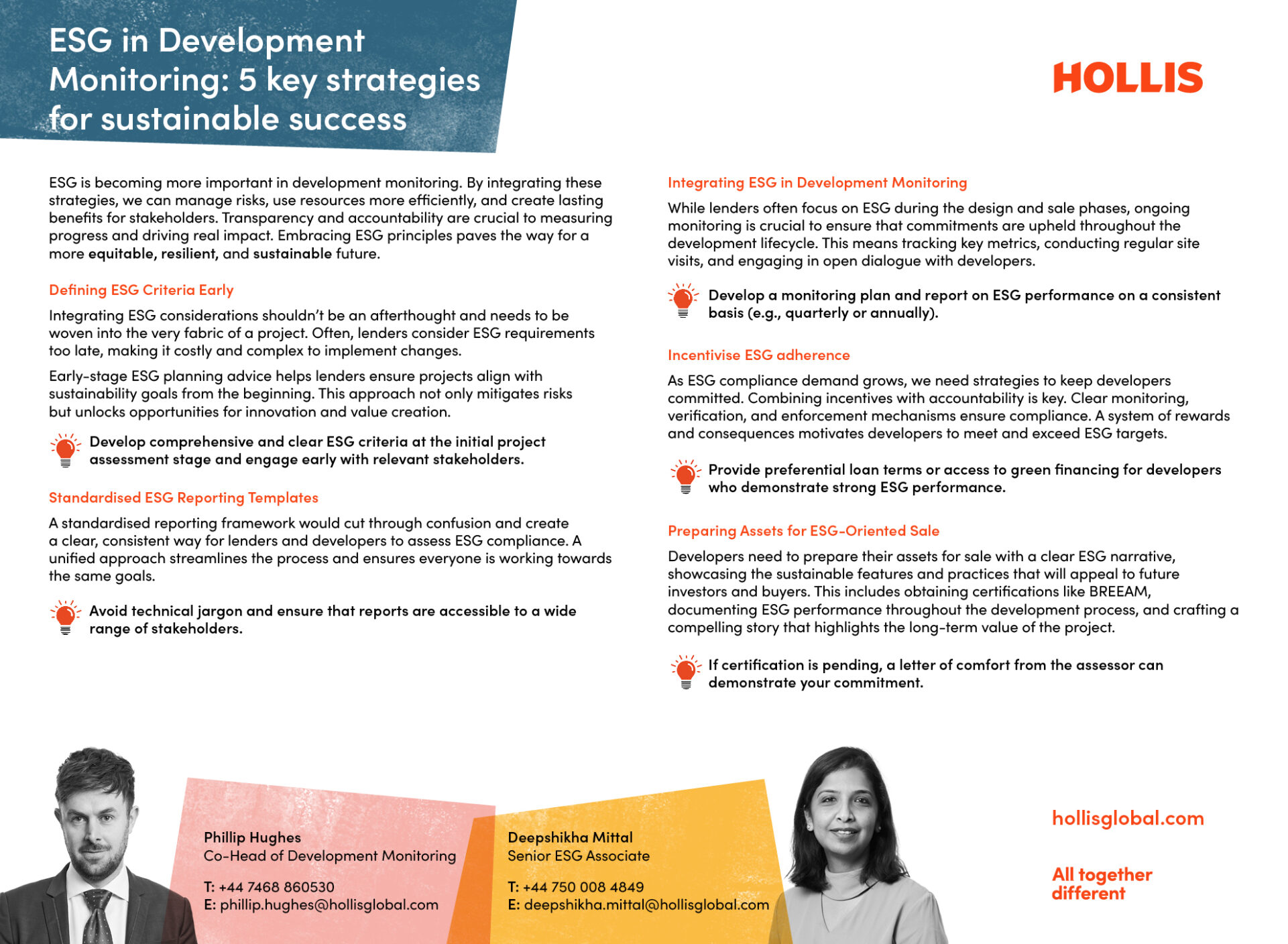 Senior ESG Associate Deepshikha Mittal and Co-Head of Development Monitoring Phil Hughes have pulled together 5 key strategies to help you successfully integrate ESG and development monitoring in your next project.
